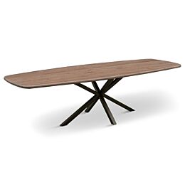 Eettafel Mira is een stijlvolle blikvanger met een karakteristiek Deens ovaal blad en elegante walnootkleurige poten. De zachte rondingen van het blad zorgen voor een verfijnde, vriendelijke uitstraling, terwijl het royale formaat voldoende ruimte biedt voor gezellige diners en lange avonden aan tafel.